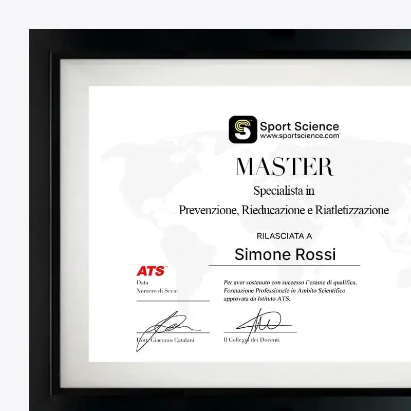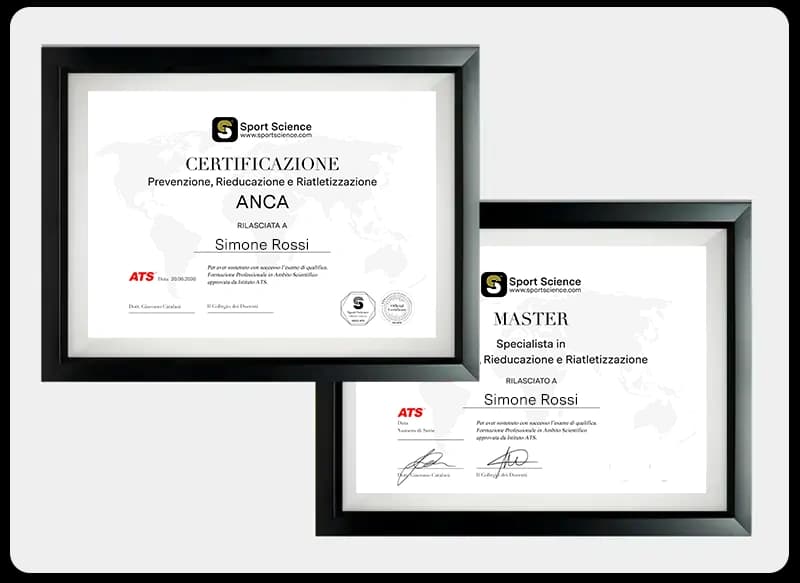 Al termine di ciascun modulo, potrai sostenere un esame online e ottenere una certificazione specifica per ogni distretto corporeo. Completato l’intero percorso, sarà possibile affrontare l’esame finale per conseguire il Diploma di Master Professionale in Prevenzione, Rieducazione e Riatletizzazione, con possibilità di iscrizione ai registri professionali internazionali.
