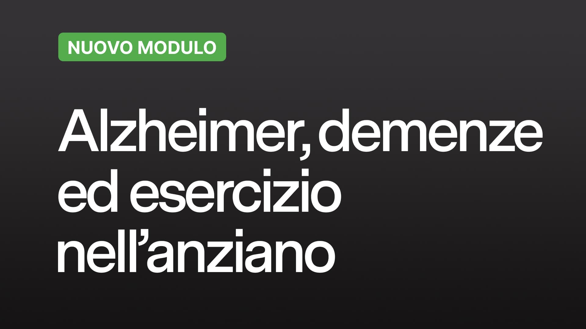 Accedi ai moduli di teoria con i dati scientifici più aggiornati e alle esercitazioni pratiche sui soggetti Senior.